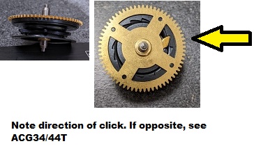 Chain gear for 34 Regula Cuckoo Movement - Time & Strike train - From the front (brass wheel) the ratchet runs clockwise - new style production with chain protector cover (may not work in older styles without this protector)